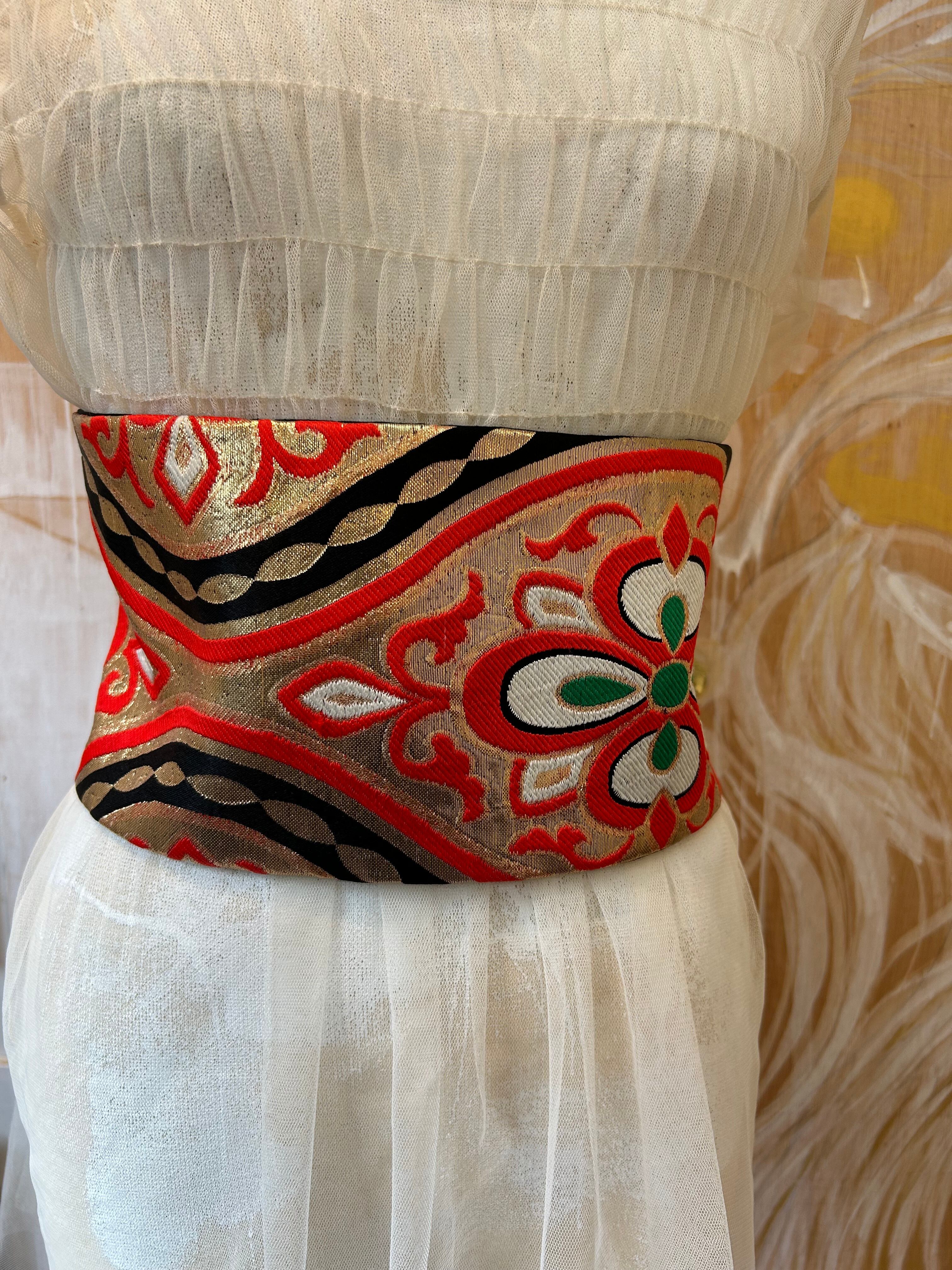帯地でサッシェベルトお仕立てしました。"むすび" シリーズです。